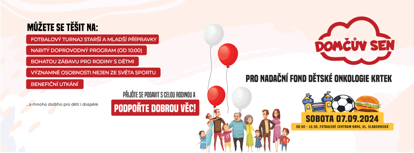 Spolek Domčův sen společně s Nadačním fondem dětské onkologie Krtek by Vás rádi pozvali na 6. ročník charitativní fotbalové akce, jejíž součástí bude tradiční chlapecký a dívčí turnaj pro kategorii U11 a WU13 a také turnaj pro mladší přípravku kategorii U8.